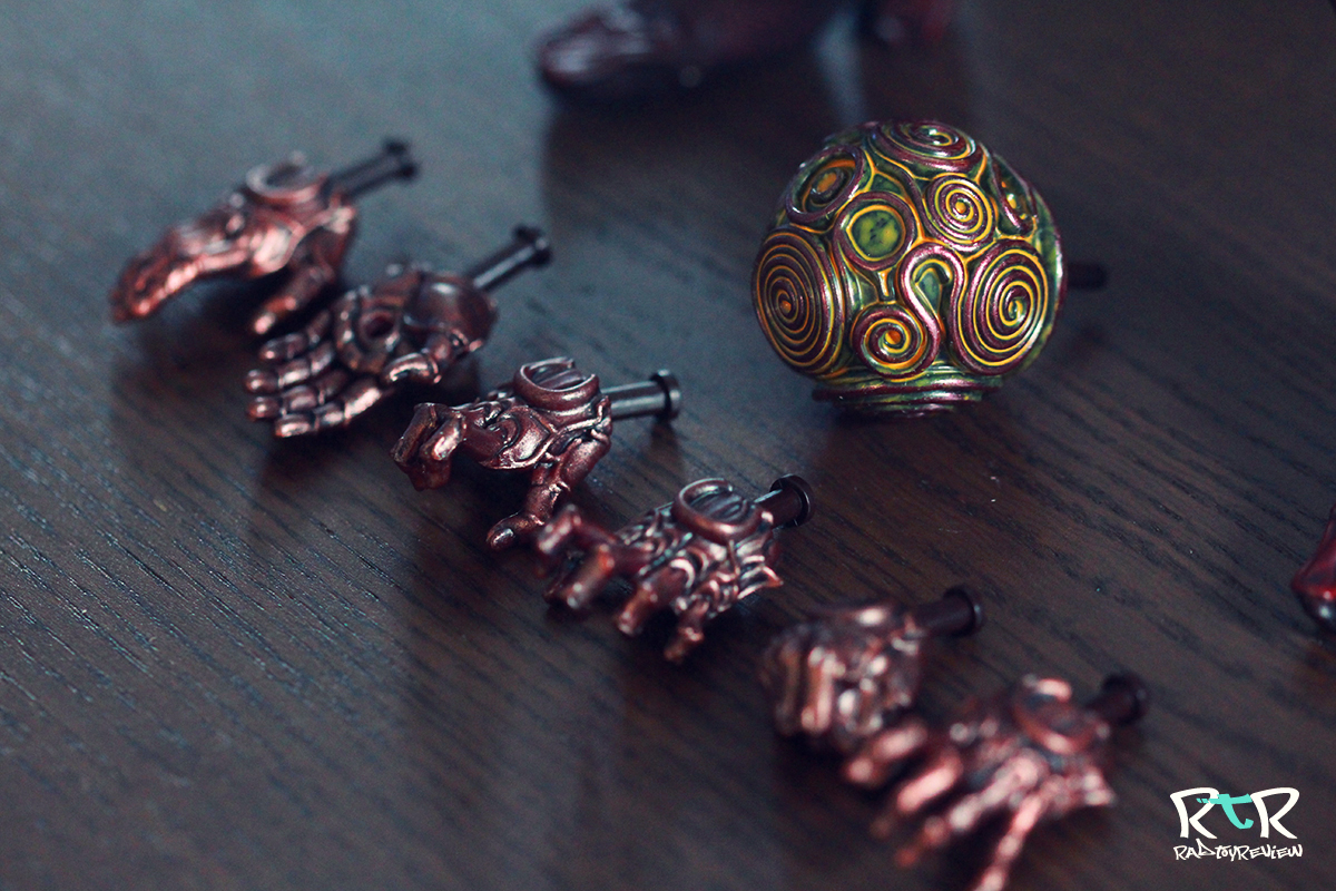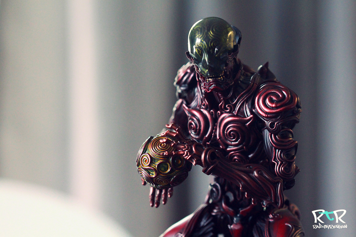 As for weapons.. I’m left to assume that Enzi IS the weapon. He comes with a ball/sphere that sports similar sculpting patterns that cover his body. Whether or not it’s really a “weapon” or not, I can’t say.