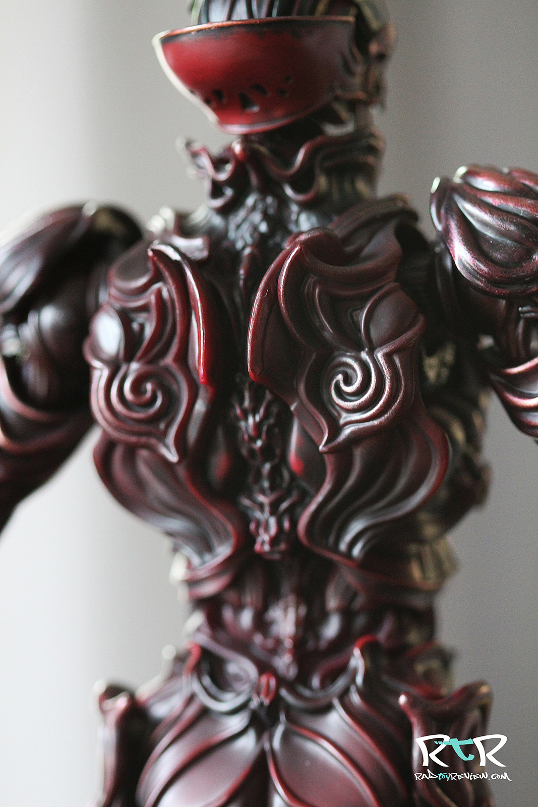 The top of his thighs also have an extended bit of filigree on the sides that jut up and over his hips. There’s an interesting blend of material going on there that’s quite flexible.. so it really doesn’t get in his way too much.