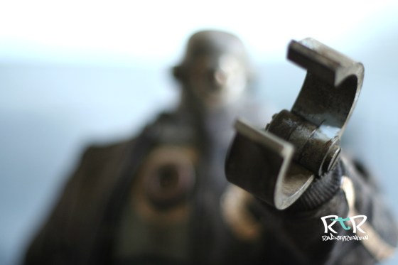 The first thing that strikes you with this guy is just how astonishingly massive he is. He will tower over all your other AK figures. I would definitely prefer to be on his side of the line if a situation arose in a dark alley or side street. Zombs beware indeed. Out of the box he feels very solid. He’s not particularly heavy but you don’t get the impression that you’re handling a hollow delicate flower. The paint and weathering on Down are really well done. It’s not a complex color scheme by any means, overall blue grey body with some cool decals and a nice level of carefully placed weathering.