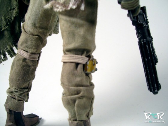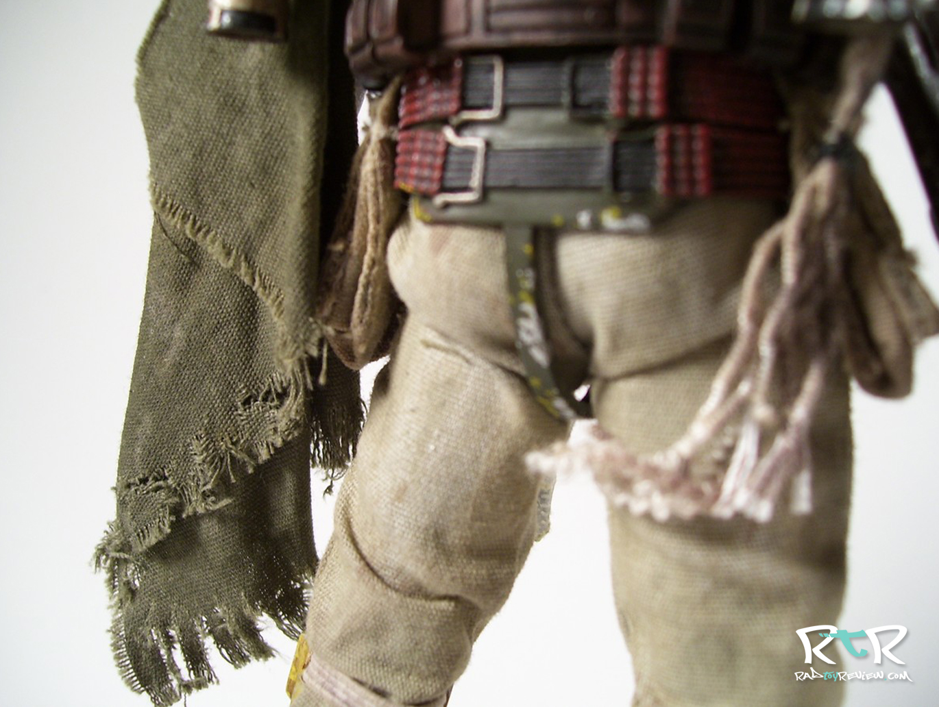 But enough about the body-construction. What makes this thing special is the covering! To turn the base Action Portable body into Boba Fett, threeA constructed a number of new pieces. Starting off, to capture the look of the actual Boba Fett costume, the wizards at threeA took the direct approach: They constructed a miniature replica of the actual Boba Fett costume. This puppy is sewn together using scaled-down stitches, capturing the look of the suit without the clunky, toy-looking stitch work found in 8-inch Mego style figures.