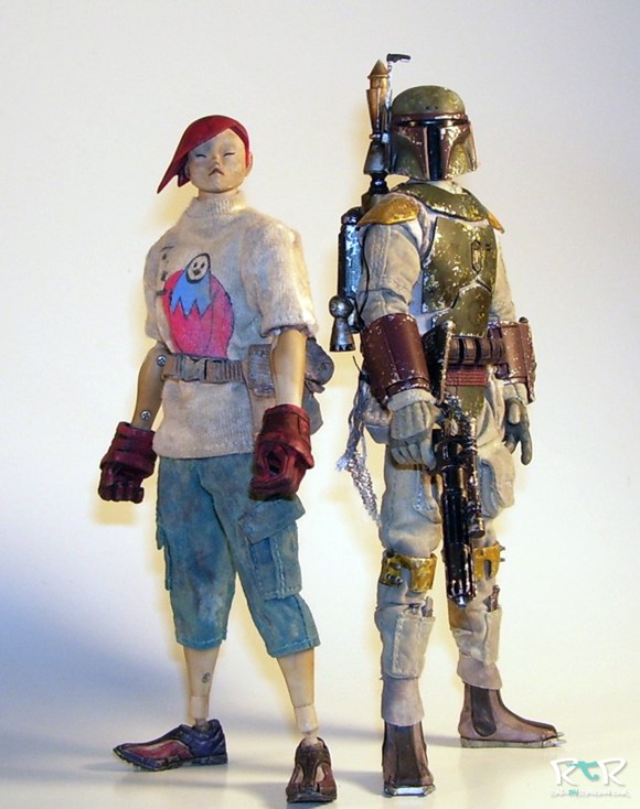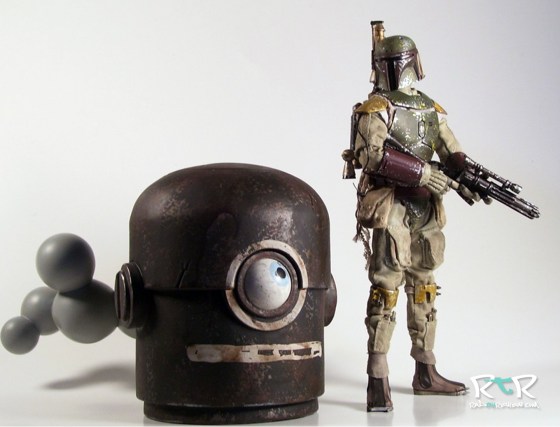 Last year, Ashley Wood and his scrappy little toy company 3A made a small handful of one-of-a-kind Star Wars figures in a bold attempt to get Lucas and his ilk to pay attention. Two of those figures were classic white Storm Troopers while one was the ever so awesome and fan favorite, Boba Fett.