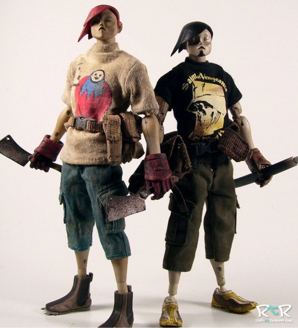 This figure uses the same base-body used by all of threeA’s 1:12 scale male figures. The “Action Portable” body is a milestone in small-scale action figures: It has the same articulation as the 12-inch figures produced by threeA, which themselves rival the bodies used by 12-inch figure producers like Hot Toys and Sideshow.