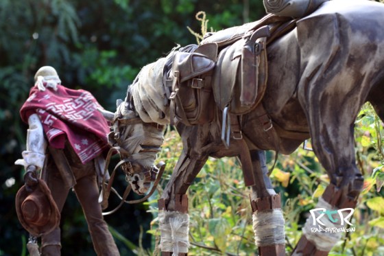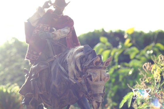 The pose of the Ghost Horse is caught in a constant mosey. At first I was at odds with this chilled out, neutral pose. Most of my characters are in some sort of action or preparing to fight stance which is impossible to achieve with Ghost. It’d also look awfully strange to have BC posed with guns blazing with GH in such a morose meander. But after spending a couple hours positioning them in various manner, I think this works better than an action or running pose might have. There’s a certain sense of purpose to Ghost’s slow, heavy stride. As silly as it may sound, it seems to give the tattered combo a somber story, a weary soul.