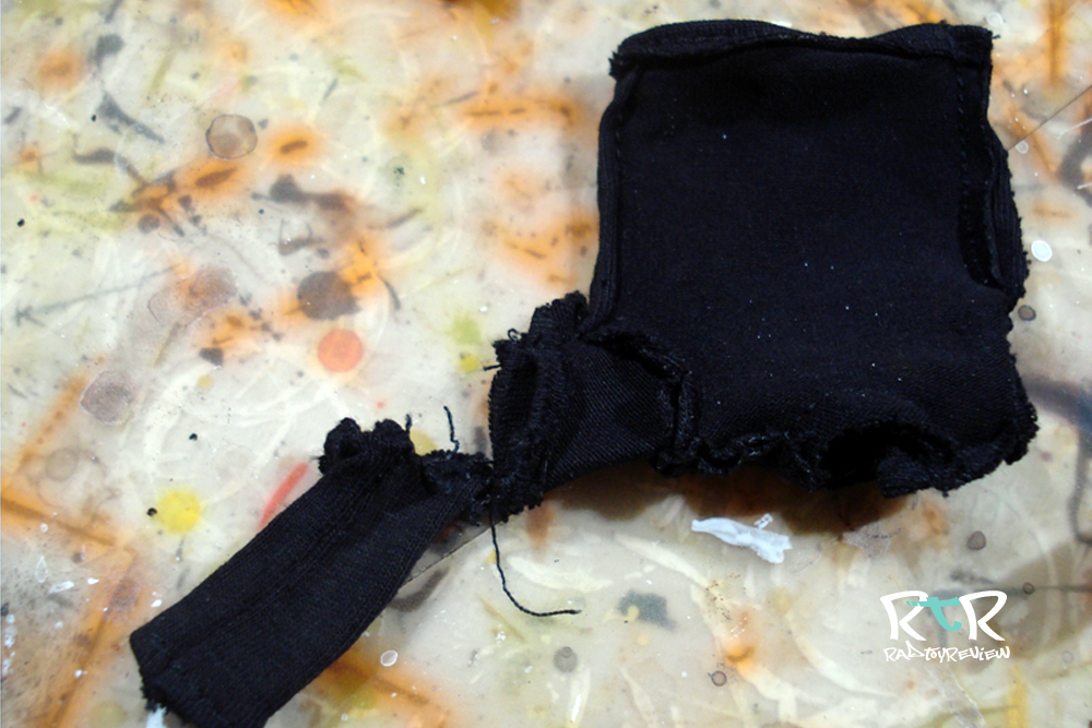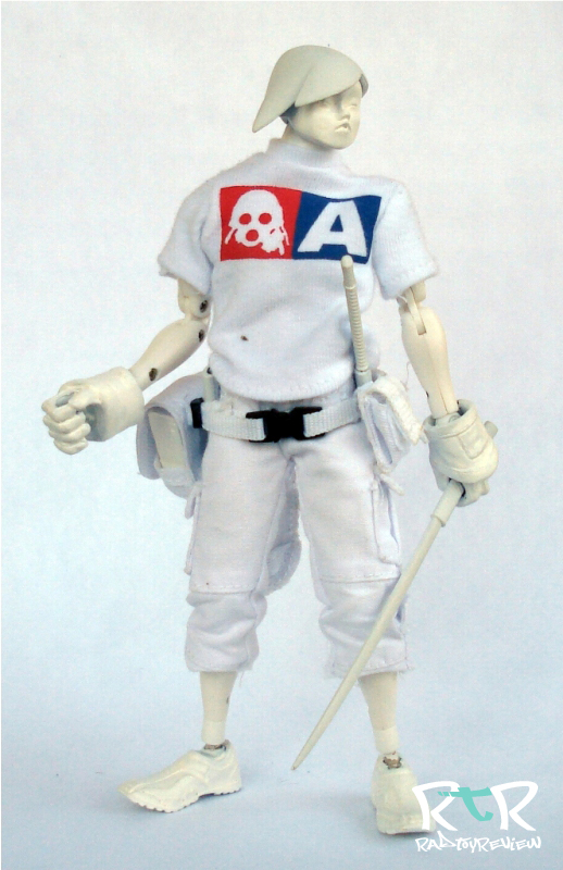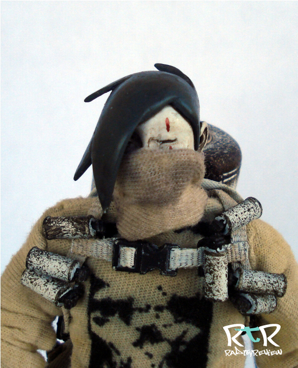 Just like all the NOMS before him, 27 is a mono-sleeved guy. The difference here is that his is tailored in such a cool and unique way. The end flap covers the top of his hands and are hemmed up at a sharp “V” angle to allow for him to hold a weapon unencumbered. It’s a nice look. It kind of reminds me of that goth kid I went to school with that always had his sleeves pulled down over his hands. But you know, way, WAY better.