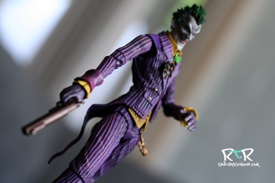 What gets me is a combination of issues. The real issue I found lies with his aforementioned tiny shoulder joints. Beyond being very obvious and sorta screwing up the otherwise killer aesthetic of the Joker, they don’t hold up to play very well either.